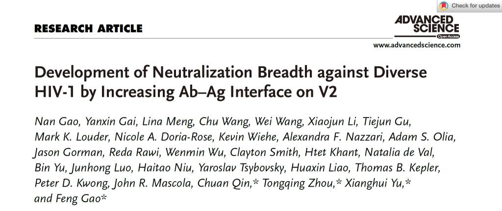 BG大游高峰教授、于湘晖教授科研团队针对目前已知报道感染时间最长的恒河猴动物模型作为研究对象,分析其体内诱导产生的广谱中和活性。通过抗体分离获得针对特异表位的J038广谱中和抗体谱系。该工作研究抗体谱系以及体内病毒包膜蛋白的突变情况,追溯广谱中和抗体的进化过程以及与SHIV共同进化的过程,分析非人类灵长动物体内与人体内产生广谱中和抗体的类似性,为更好地应用恒河猴模型来评价HIV-1疫苗提供理论和实验依据。该J038谱系抗体的发育细节和识别特征为今后V2靶向广谱中和抗体的研究和应用提供了新的见解。该研究成果于2022年03月24日在学术期刊《Advanced Science》在线发表(Development of Neutralization Breadth against Diverse HIV-1 by Increasing Ab–Ag Interface on V2)。论文第一完成单位为BG大游,第一作者为BG大游的博士研究生高楠,bg大游集团官网于湘晖教授和高峰教授,美国国立卫生研究院疫苗研究中心的周同庆教授和中国医学科公司医学实验动物研究所秦川教授为该论文的共同通讯作者。