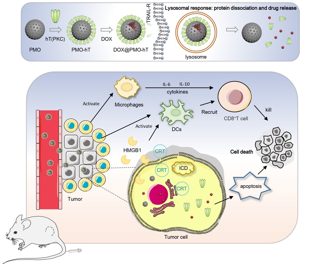 图2. DOX@PMO-hT(PKC)设计及抗肿瘤机制示意图