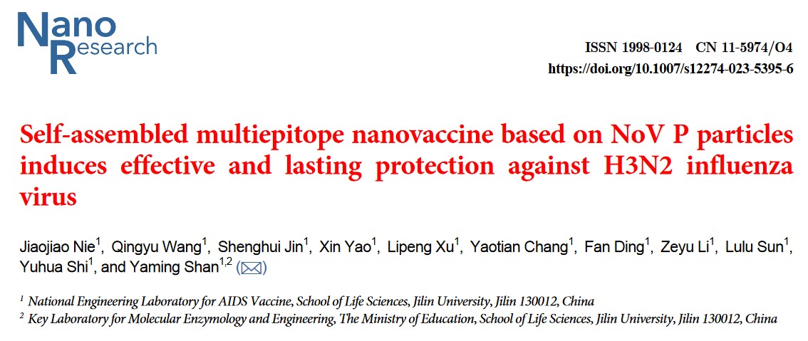 BG大游艾滋病疫苗国家工程实验室单亚明教授团队,在通用型流感疫苗研究领域取得新进展。相关研究内容以“Self-assembled multiepitope nanovaccine based on NoV P particles induces effective and lasting protection against H3N2 influenza virus”为题,于2023年2月16日在学术期刊《Nano Research》正式发表。