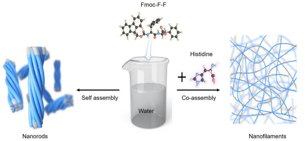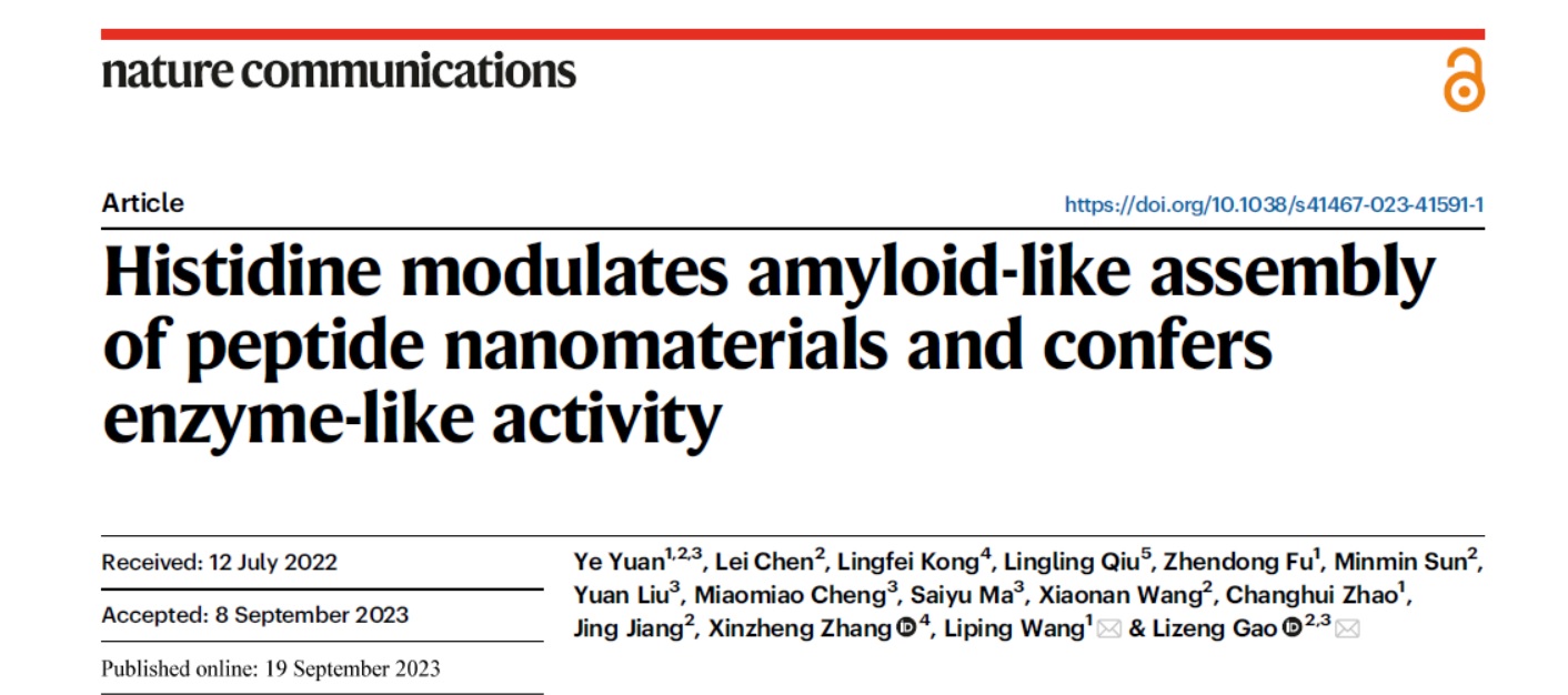 BG大游王丽萍教授研究团队联合中国科公司生物物理研究所的高利增教授研究团队以Fmoc-F-F为简约模型,发现组氨酸可以调节Fmoc-F-F的组装行为,诱导酶样催化。相关结果近日发表在Nature Communications上(Histidine modulates amyloid-like assembly of peptide nanomaterials and confers enzyme-like activity. Nature Communications, 2023, 14:5808.)