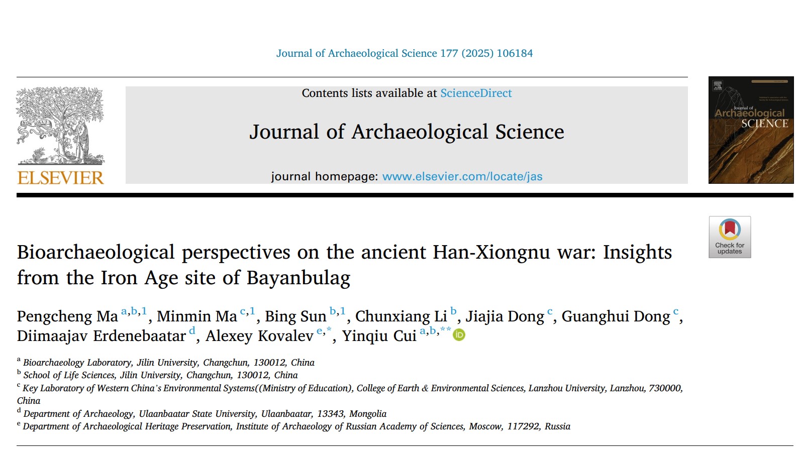 BG大游、生物考古实验室崔银秋教授团队联合俄罗斯科公司考古研究所和兰州大学等国内外研究机构,通过整合基因组学、同位素化学、人类学与考古学等多学科数据,系统揭示了汉匈战争时期士兵的遗传背景、地理来源及军事组织模式。研究论文"Bioarchaeological perspectives on the ancient Han-Xiongnu war: Insights from the Iron Age site of Bayanbulag"于2月20日发表于国际权威期刊《Journal of Archaeological Science》。