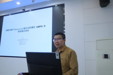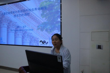 学术交流环节由于彬主持。“春晖计划”学者代表团陈勇博士、张尧博士、吴萍博士分别带来《mRNA递送:脂质纳米粒技术的理性设计和优化》、《肌肉干细胞的再生与发育功能》、《无菌饮食限制对秀丽隐杆线虫寿命和生理状态的调控》的报告,与会专家学者和公司师生进行了充分讨论和交流。