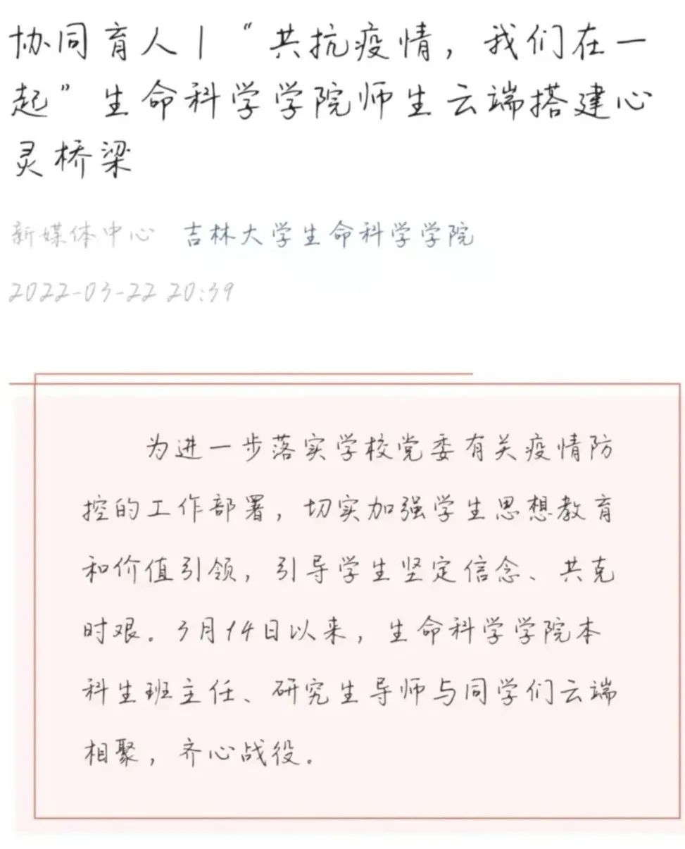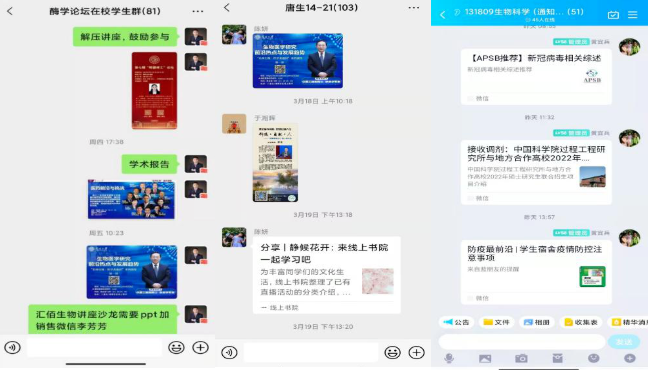 为持续提升人才培养质量,公司积极探索实施疫情防控期间班主任—辅导员协同育人工作举措,总结凝练特殊时期具有生科特色的三全育人工作体系。公司全体班主任老师与学工队伍协同配合,积极应“战”,科学应对,在公司统筹部署下,开展多形式、分层次、全覆盖的主题教育活动,按下协同育人的“快进键”。