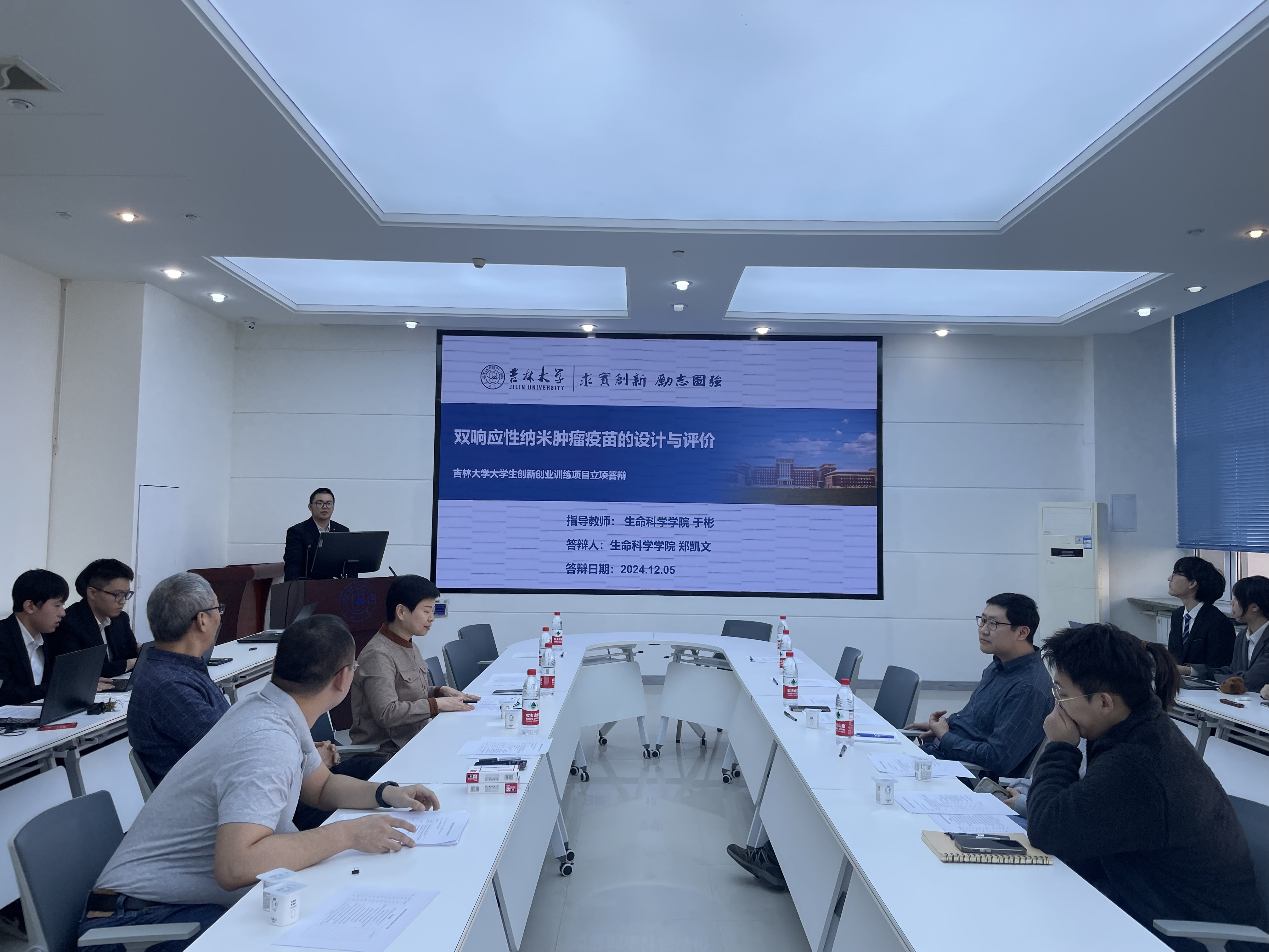 科研训练汇报答辩会由2022级班主任刘振江老师主持,由高仁钧教授、郑良玉教授、苏维恒副教授、郭野副教授、韩浩博副教授担任汇报评审专家,2022级、2023级唐敖庆理科试验班员工参会。2022级唐班全体同学依次向大家介绍了课题的研究背景、实验设计、实验结果及未来展望等内容。郑凯文同学为大家介绍了在T细胞与B细胞双响应性纳米肿瘤疫苗的设计与评价方面的研究进展,韦华申同学向大家展示了光热响应型DNA折纸-金纳米机器人的精巧构思。同学们的精彩汇报引发了热烈讨论,这些成果充分体现了员工们扎实的专业知识和创新精神。答辩结束后,高仁钧教授进行了总结,评审专家在肯定各位同学新颖课题研究及精彩答辩的同时,也指出了同学们在PPT制作、实验设计、科研汇报等方面存在的不足,为同学们的课题思路提出建议。他鼓励同学们在今后的学习和研究中,不断深化理论知识,提升实验技能,保持严谨的科研态度,砥砺前行,追求卓越,以期在未来的科研道路上取得突出成就。