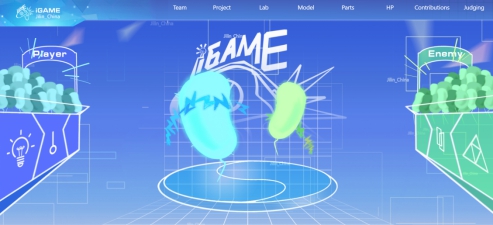 2020年,Jilin_China的参赛题目为“iGAME”,一款以合成生物学为基础设计的小游戏。在游戏中玩家通过不同颜色的光来控制“Player”和“Enemy”进行对抗,“Enemy”持续进行攻击(黄框所示),蓝光照射后“Player”开始防御(蓝框所示),红光照射后“Player”开始反击(红框所示),最终通过KNN算法计算菌的数目判别胜负。“iGAME”模拟了一种简单的竞争关系,其对丰富和发展菌落间相互作用的研究具有一定意义,同时也给模拟群落的时空演化提供了新的思路。“iGAME”为一款模拟生命系统的游戏,该项目的实施展示了合成生物学在开发基于生命系统的游戏方面的潜力。