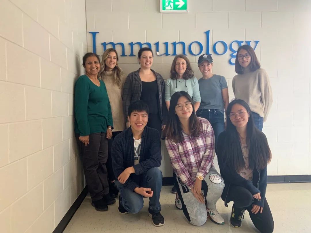 2019年,经过重重面试,苑赫恬同学成功申请了国家留学基金委和加拿大非政府组织合办的MITACS暑期科研实习项目,公费赴加拿大多伦多大学免疫学部Tania Watts课题组进行为期三个月的科研实习。在三个月的期间里,她学习了有关小鼠实验、免疫荧光成像技术等免疫学所必须的实验技术,她积极与公司内部的教授及研究生同学交流学习,最终完成了题为‘TNFR family members in infection and cancer’的科研课题,探究了在感染发生以后T细胞活化的新机制。除了实验室的工作外,她还求知若渴,主动接受了本科生的分子生物学等课程以及收听不同教授的报告和讲座等,充实了自己的学科知识。在多伦多期间,她还与公司内和一同参加项目的来自世界各地的年轻人建立了深厚的友谊。