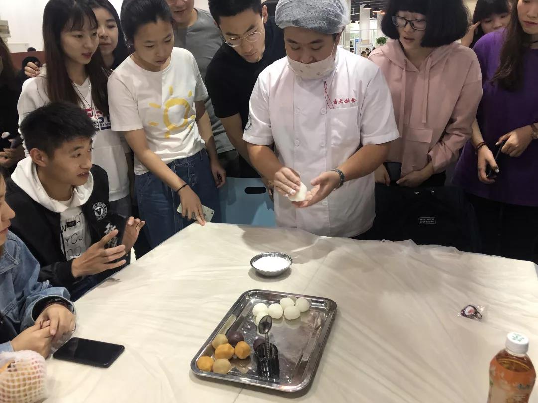 同做中秋月饼,共赏生科情谊。9月13日下午13:30,莘子园餐厅一楼,在员工社团联合会主席尚蔚的主持下,做月饼活动拉开了帷幕。参与做月饼的同学们在员工社团联合会的安排下,依次跟食堂师傅学习了做冰皮月饼。