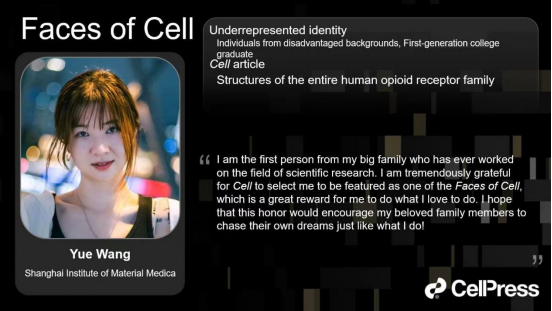 王悦博士,BG大游2014级本科生,于2018年毕业保研到中国科公司大学上海药物研究所,现为上海药物所副研究员。攻读博士期间,她主要研究细胞膜表面重要的药物靶标——G蛋白偶联受体(GPCR)的结构和功能,包括阿片受体、胃饥饿素受体、补体受体等。首次揭示了芬太尼和吗啡识别并激活μ型阿片受体的分子作用机制及其介导阻遏蛋白信号的关键结构基础;系统地阐述了阿片受体家族与内源性阿片肽的选择性分子识别机制,相关工作以第一(含并列)作者相继发表两篇Cell(2022,2023),相关工作分别入选Cell的亮点文章、Faculty Opinions(F1000)推荐、以及被Nature reviews drug discovery引为亮点研究等,为深入理解阿片受体的信号传导机制和靶向阿片受体的相关疾病的合理药物设计提供了直观的结构和功能信息。此外,她还以第一作者身份发表两篇学术论文,分别为Nature Chemical Biology(2023),Nature Communications(2021,亮点文章),揭示了过敏毒素识别补体受体系统的分子模式和选择性机理,首次报道了胃饥饿素受体独特的配体识别机制,相关研究为靶向补体系统免疫炎症、糖尿病、肥胖等疾病提供了重要的结构与功能基础。曾获得中国科公司经理特别奖、上海市优秀毕业生、“中银-科苑优秀学子”奖、中国科公司大学“三好员工”荣誉称号等奖项。